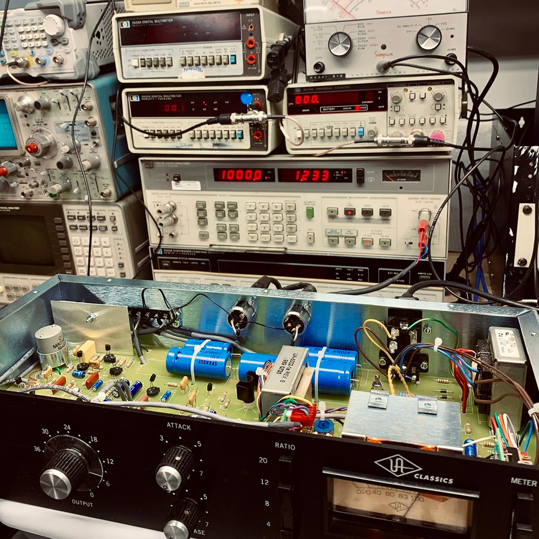 All repairs undergo rigorous testing on a specialized audio test bench to guarantee proper operation, performance, and longevity. Testing includes evaluations of gain/level, frequency response, total harmonic distortion plus noise (THD+N), crosstalk, and signal-to-noise ratio (SNR).